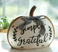 Set Of 3 Assorted Resin Harvest Pumpkin Signs With Black And White Checked Bow 8.2 Inch